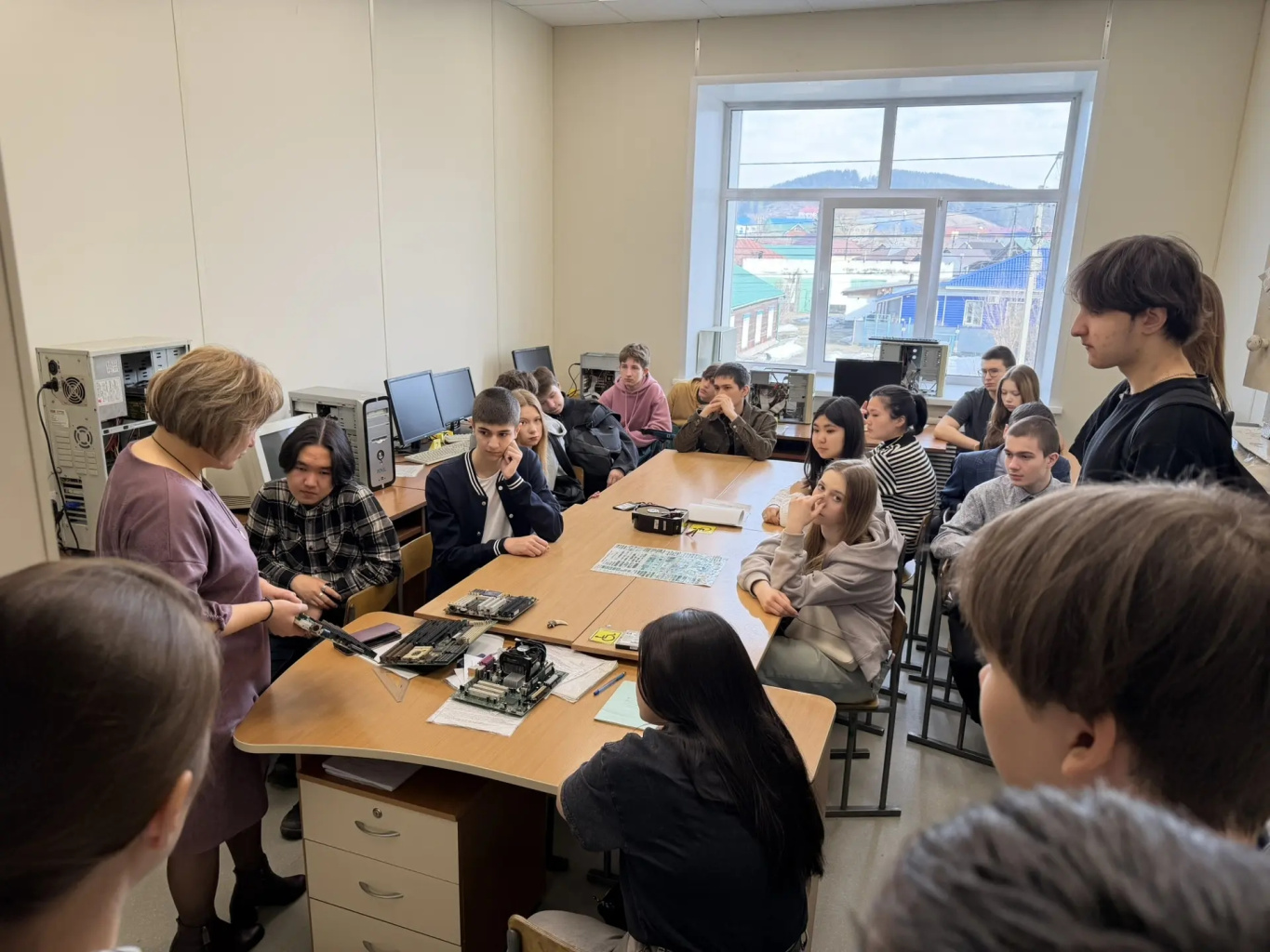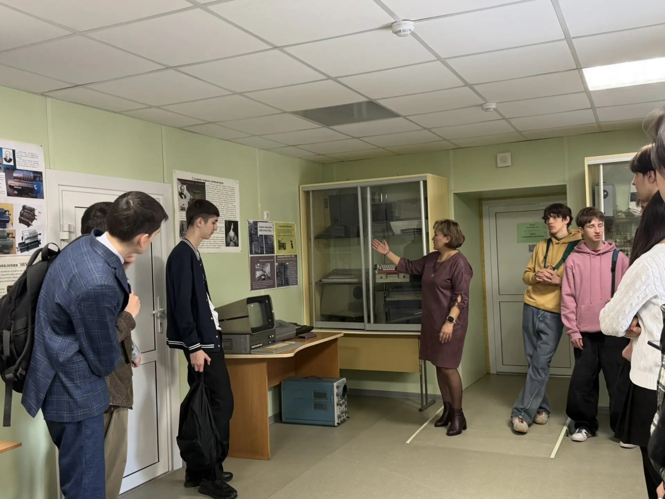 Рада Александровна Богданова познакомила гостей с архитектурными особенностями микропроцессоров, материнских плат, и их логическими принципами функционирования; учащиеся попробовали провести наблюдения, снять осциллограммы при исправном и неисправном состоянии определенного операционного узла. Также гостям рассказали об истории развития вычислительной техники, представив некоторые экспонаты.